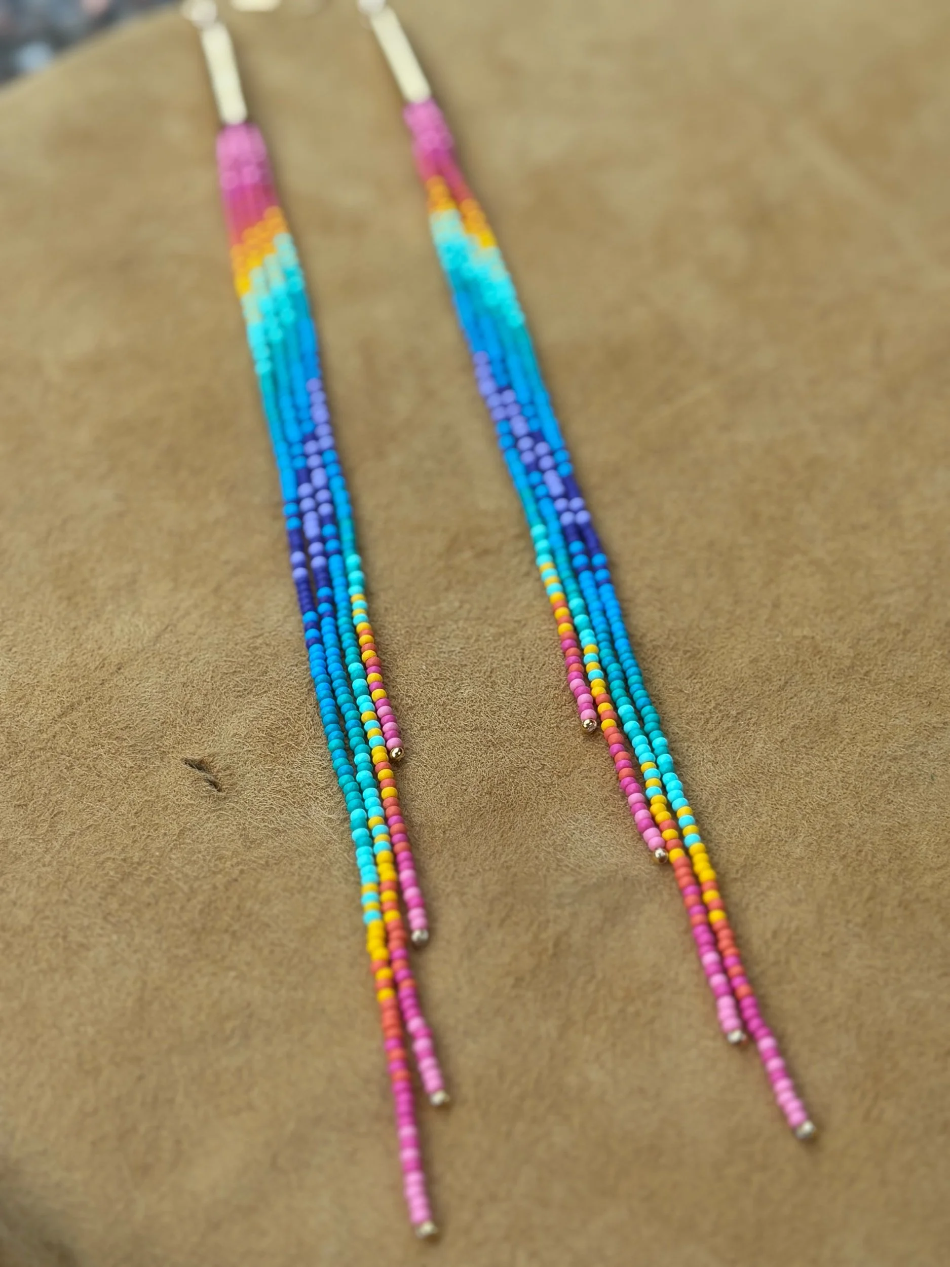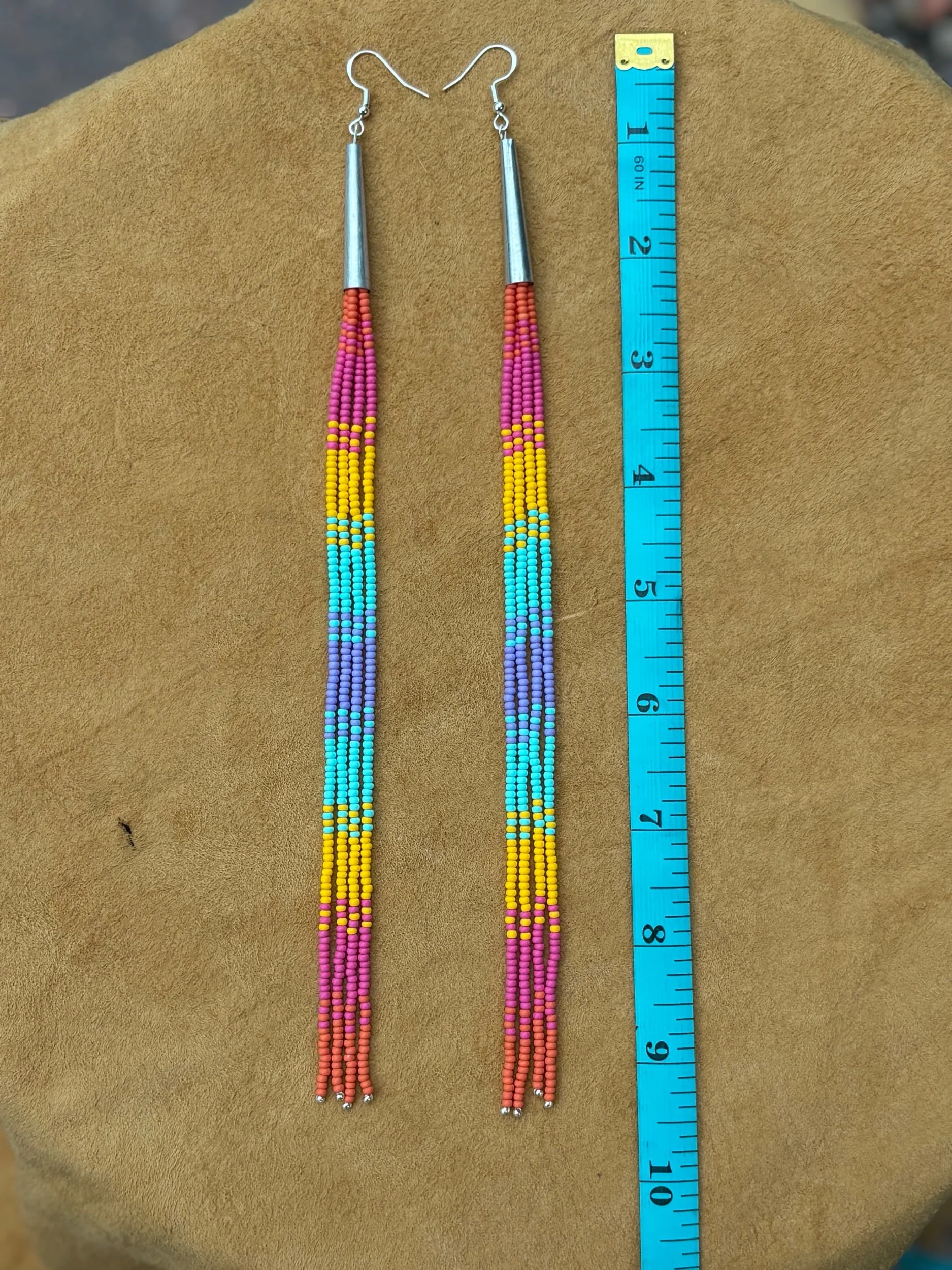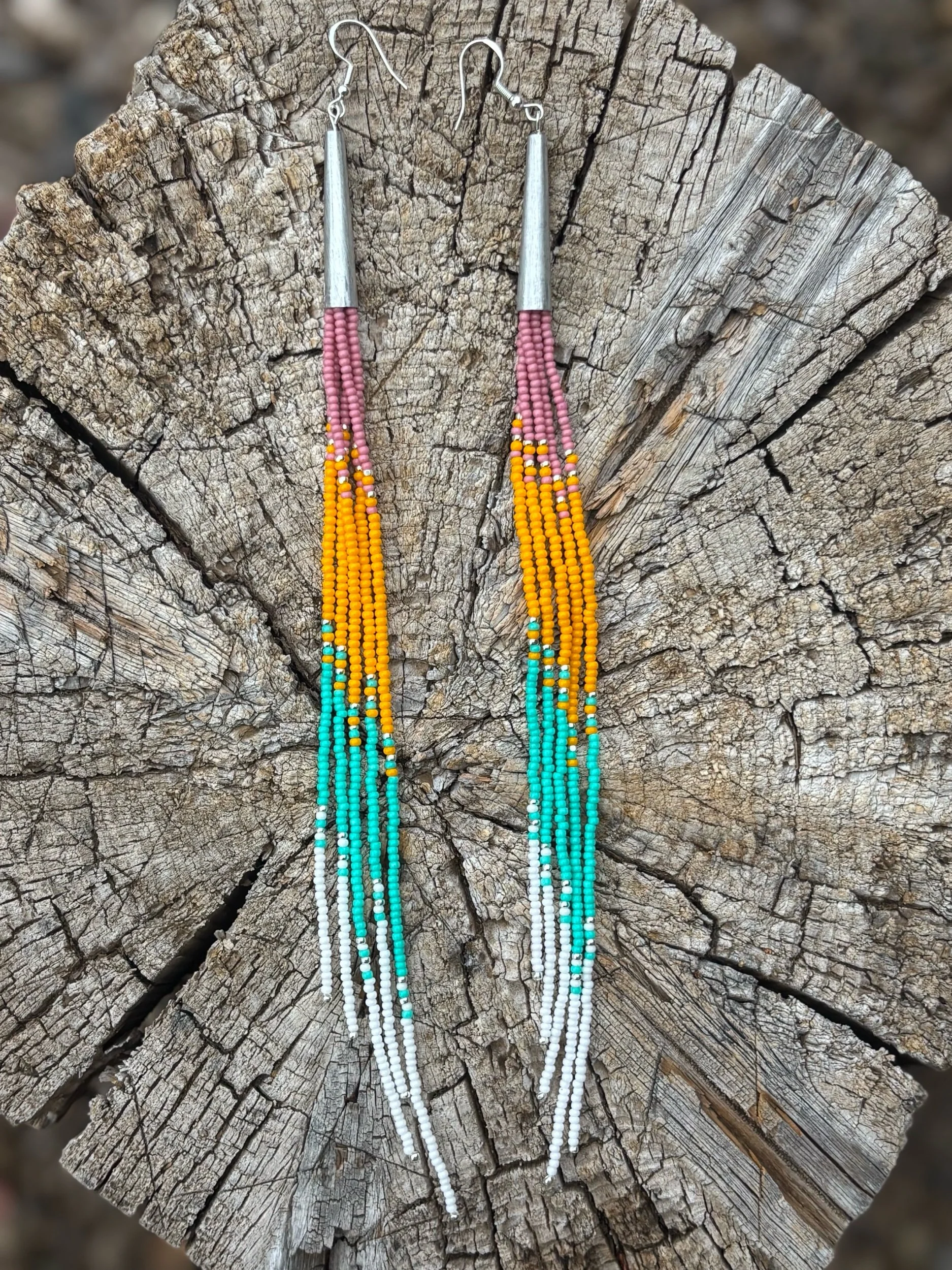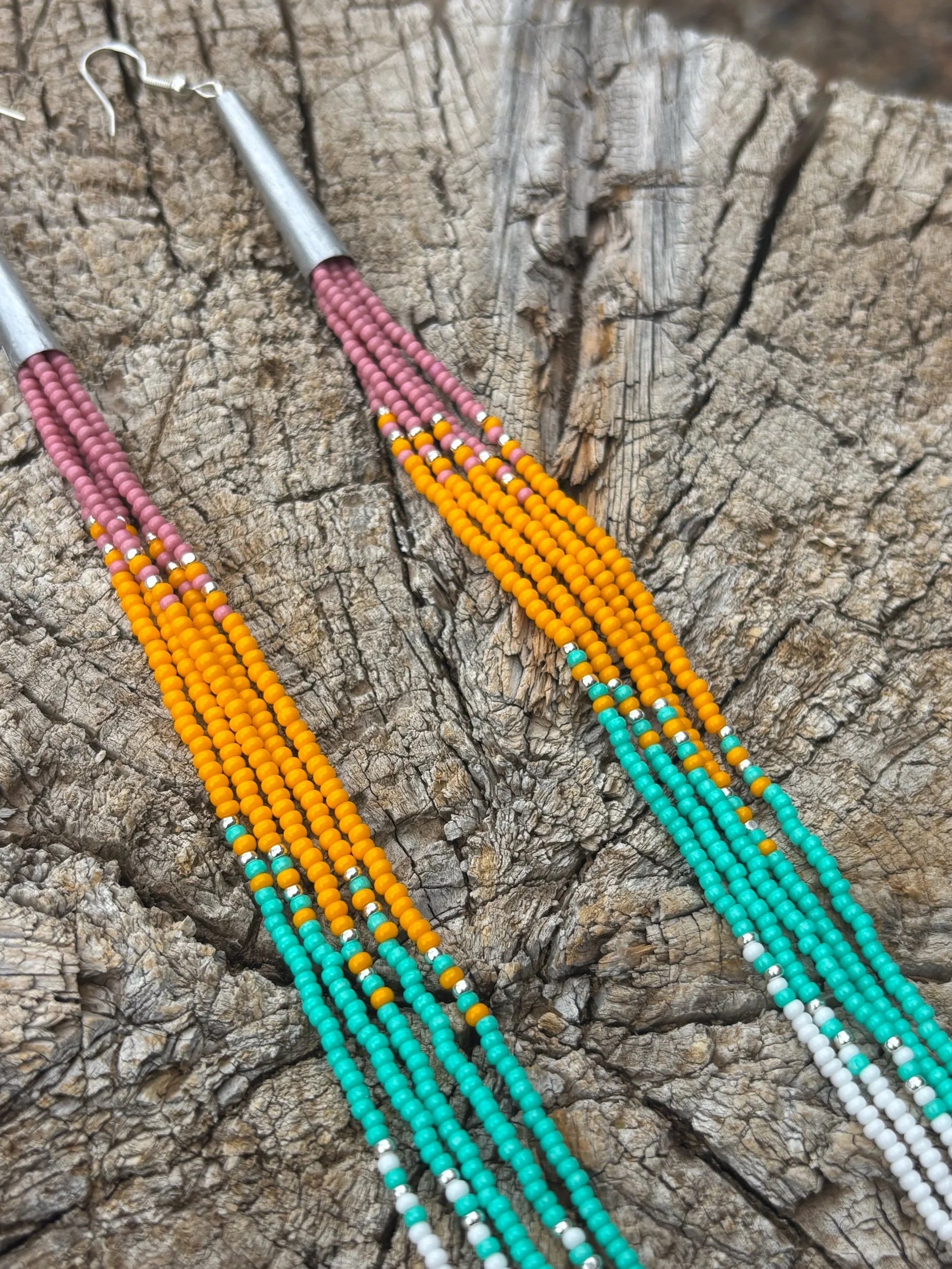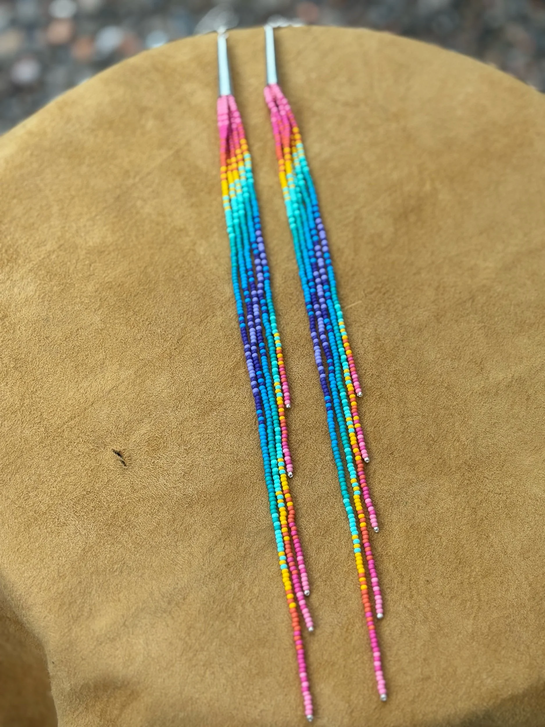Turquoise and Sterling Silver Seven Strand Fringe Earrings $80.00 Orange and Blue “Thunder Theme Wristlet and Earring Set $70.00 Multicolored Striped Keychain $40.00 Four Strand Rainbow Matte Earrings $120.00 Matte Rainbow Cascading Fringe Earrings $120.00 Blue, Green and Yellow Five Strand Dentalium Fringe Earrings $120.00 Matte Chalk Block Fringe Earrings $80.00 Matte Mustard + Black Fringe Earrings $55.00 Matte Teal and Black + Sterling Silver Fringe Earrings $60.00 Matte Blue and Black + Sterling Silver Fringe Earrings $60.00 Multicolor Fringe Earrings with Sterling Silver Accents $60.00 Sold out Keychain $40.00 Hat Band Sale Price: $50.00 Original Price: $80.00 Sale Green and Gold Strawberry Fringe Earrings Sale Price: $45.00 Original Price: $60.00 Sale Green Dentalium Cascade Earrings $120.00 Sold out GIFT CARD from $50.00