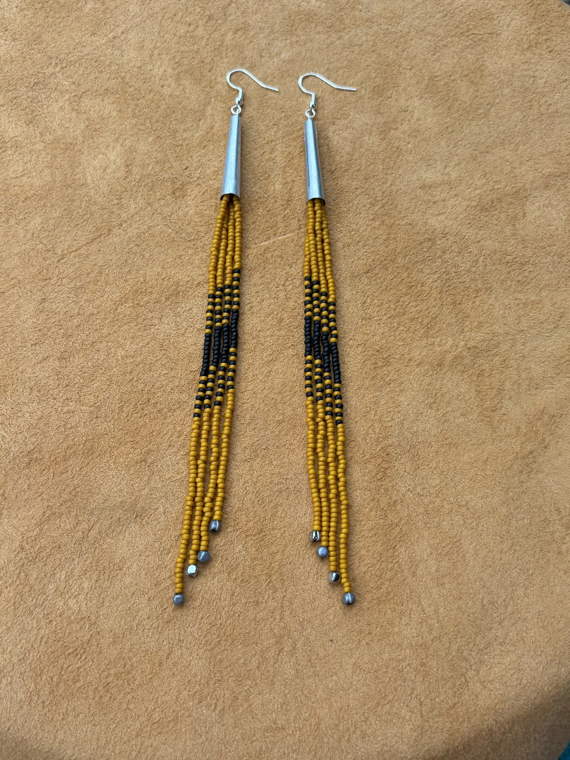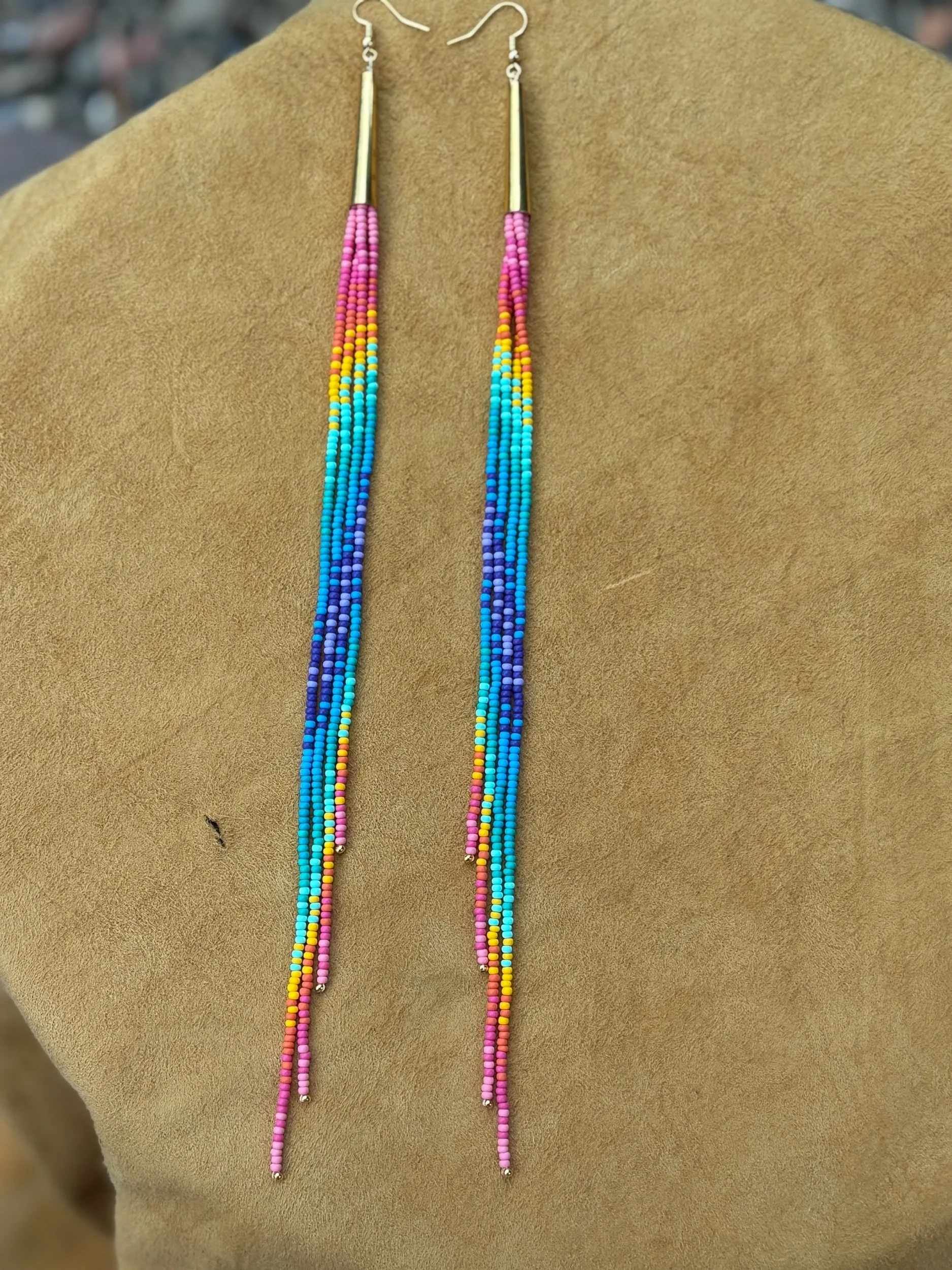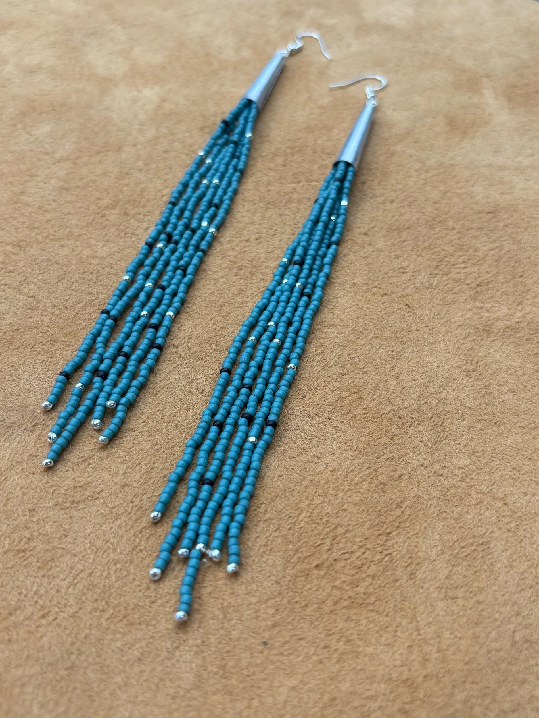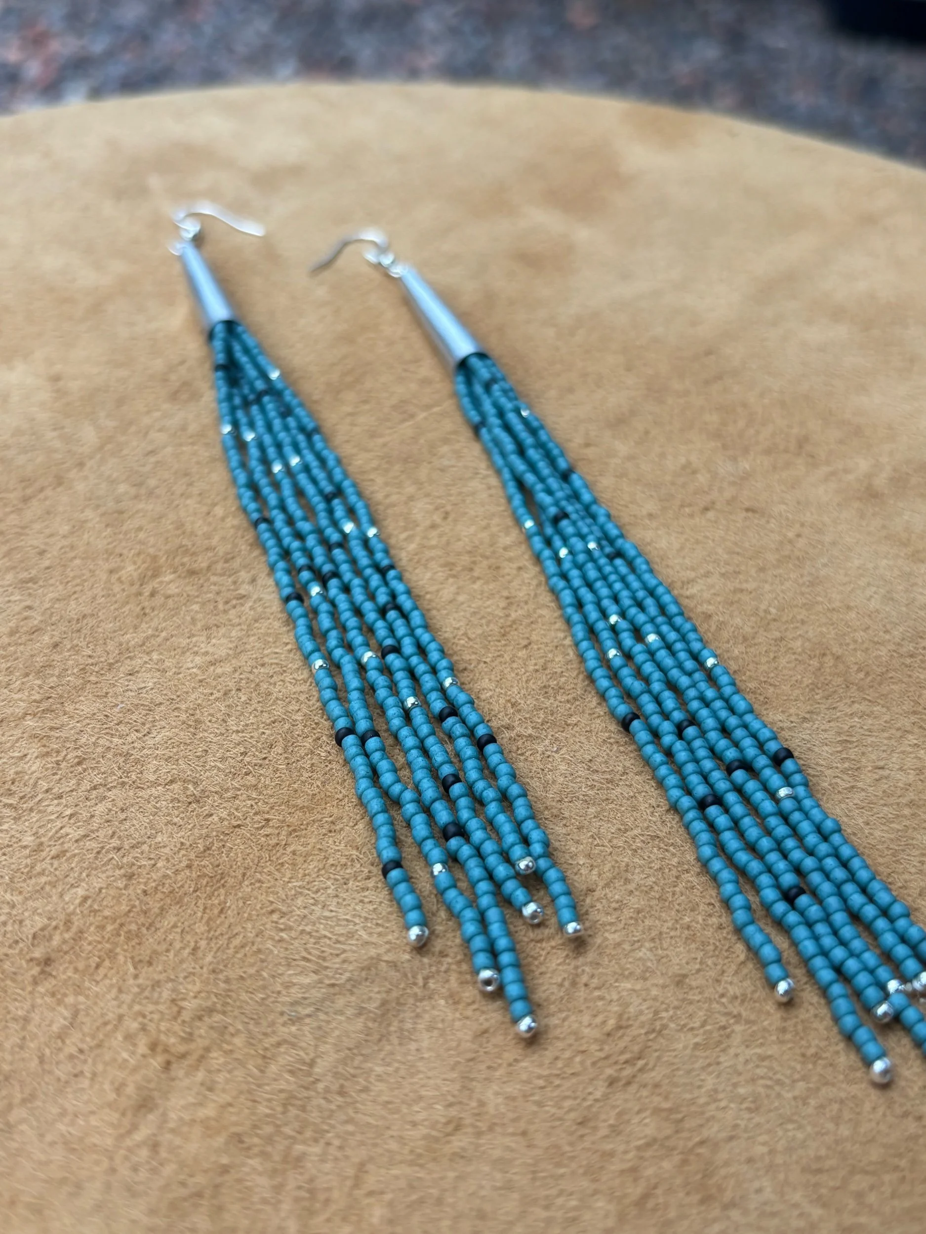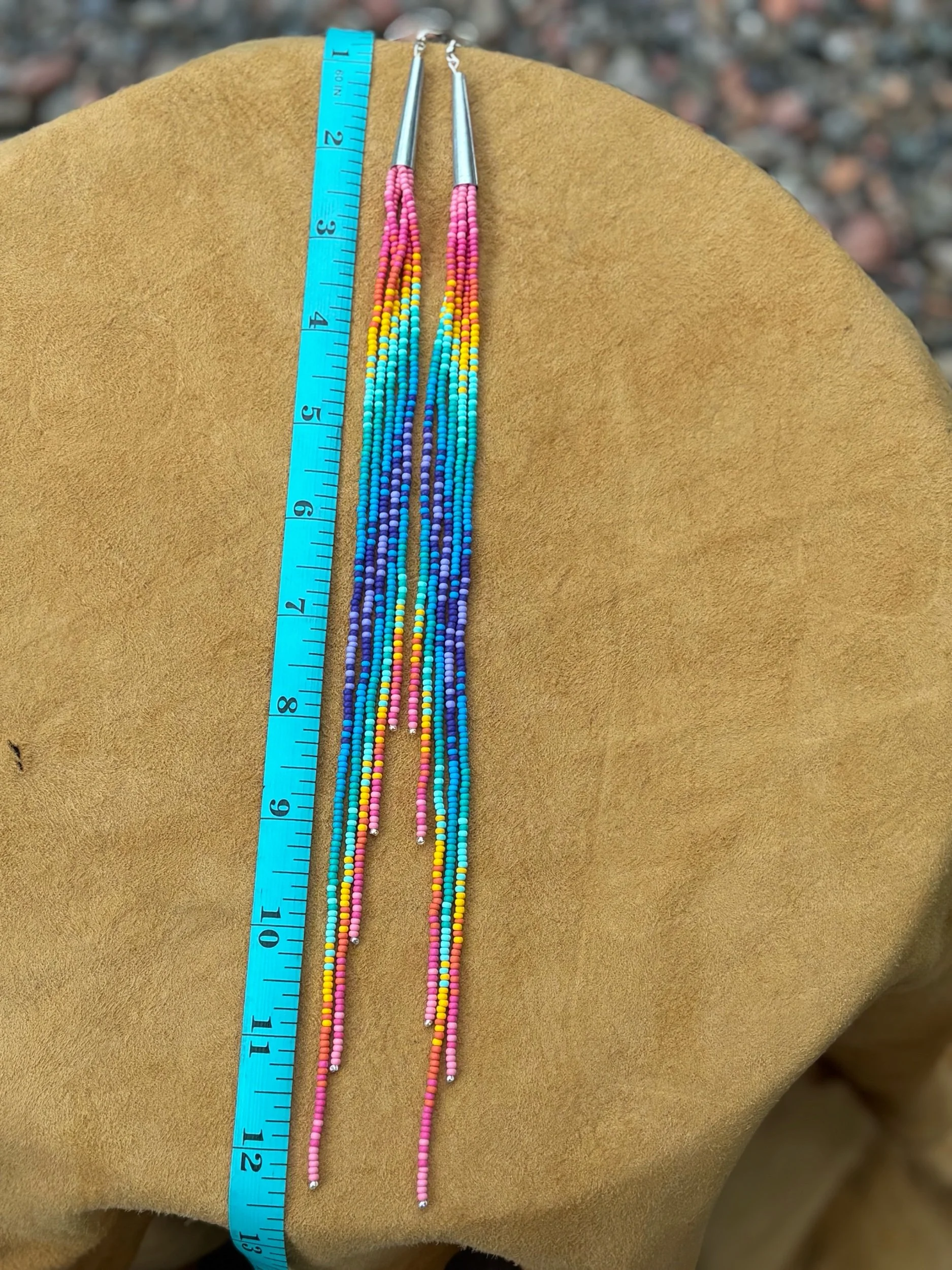 Turquoise and Sterling Silver Seven Strand Fringe Earrings $80.00 Orange and Blue “Thunder Theme Wristlet and Earring Set $70.00 Multicolored Striped Keychain $40.00 Four Strand Rainbow Matte Earrings $120.00 Matte Rainbow Cascading Fringe Earrings $120.00 Blue, Green and Yellow Five Strand Dentalium Fringe Earrings $120.00 Matte Chalk Block Fringe Earrings $80.00 Matte Mustard + Black Fringe Earrings $55.00 Matte Teal and Black + Sterling Silver Fringe Earrings $60.00 Matte Blue and Black + Sterling Silver Fringe Earrings $60.00 Multicolor Fringe Earrings with Sterling Silver Accents $60.00 Sold out Keychain $40.00 Hat Band Sale Price: $50.00 Original Price: $80.00 Sale Green and Gold Strawberry Fringe Earrings Sale Price: $45.00 Original Price: $60.00 Sale Green Dentalium Cascade Earrings $120.00 Sold out GIFT CARD from $50.00