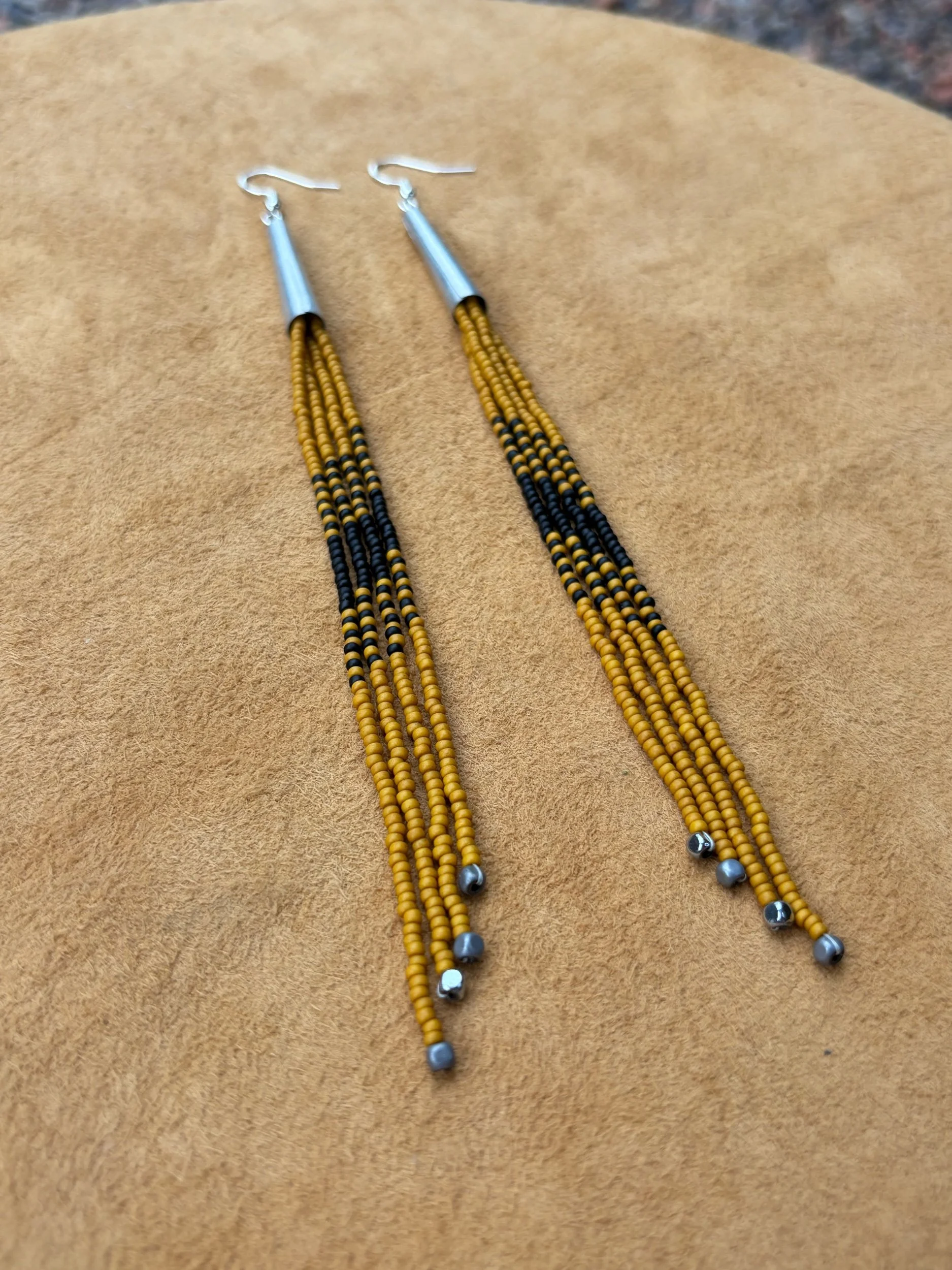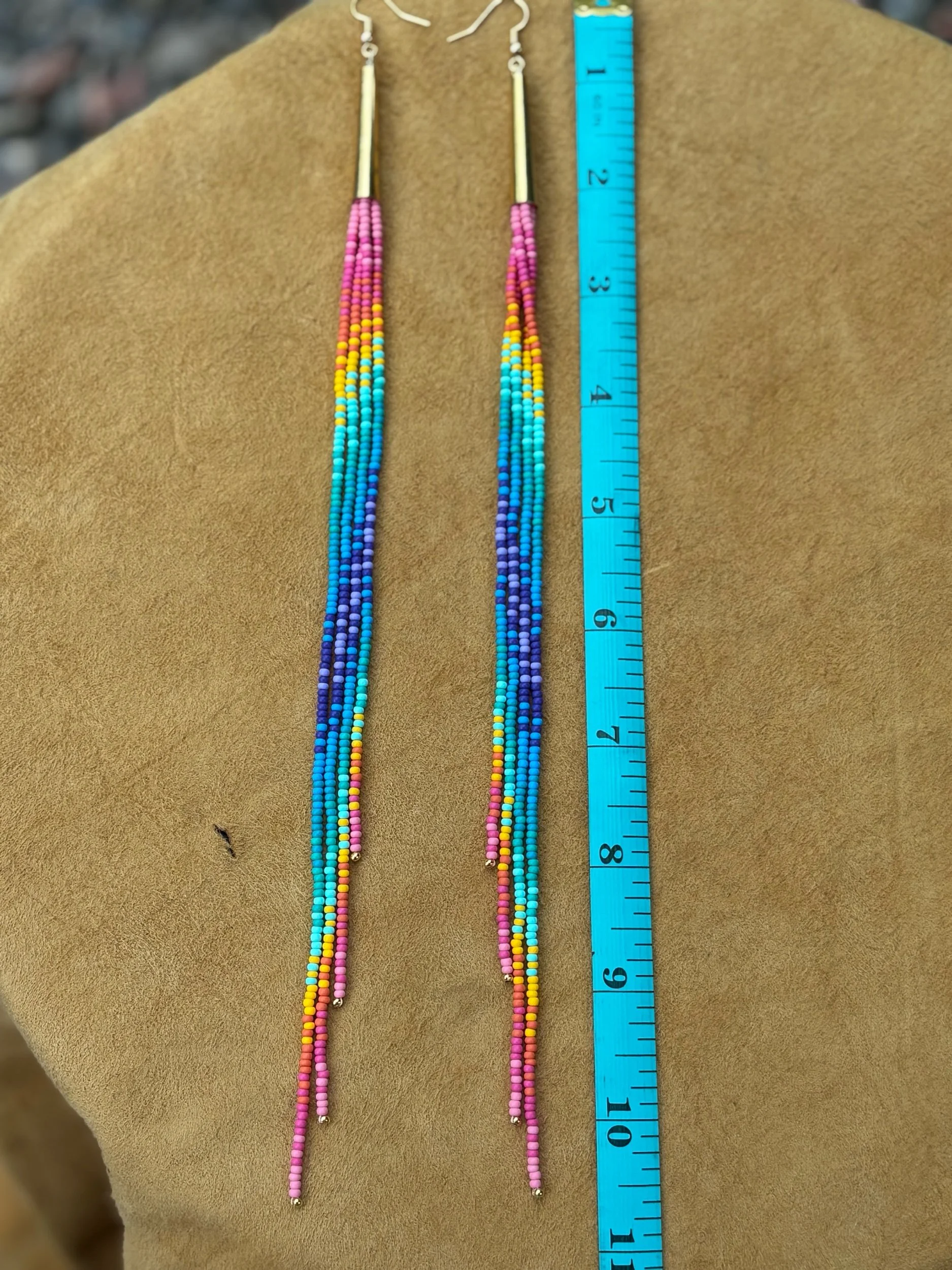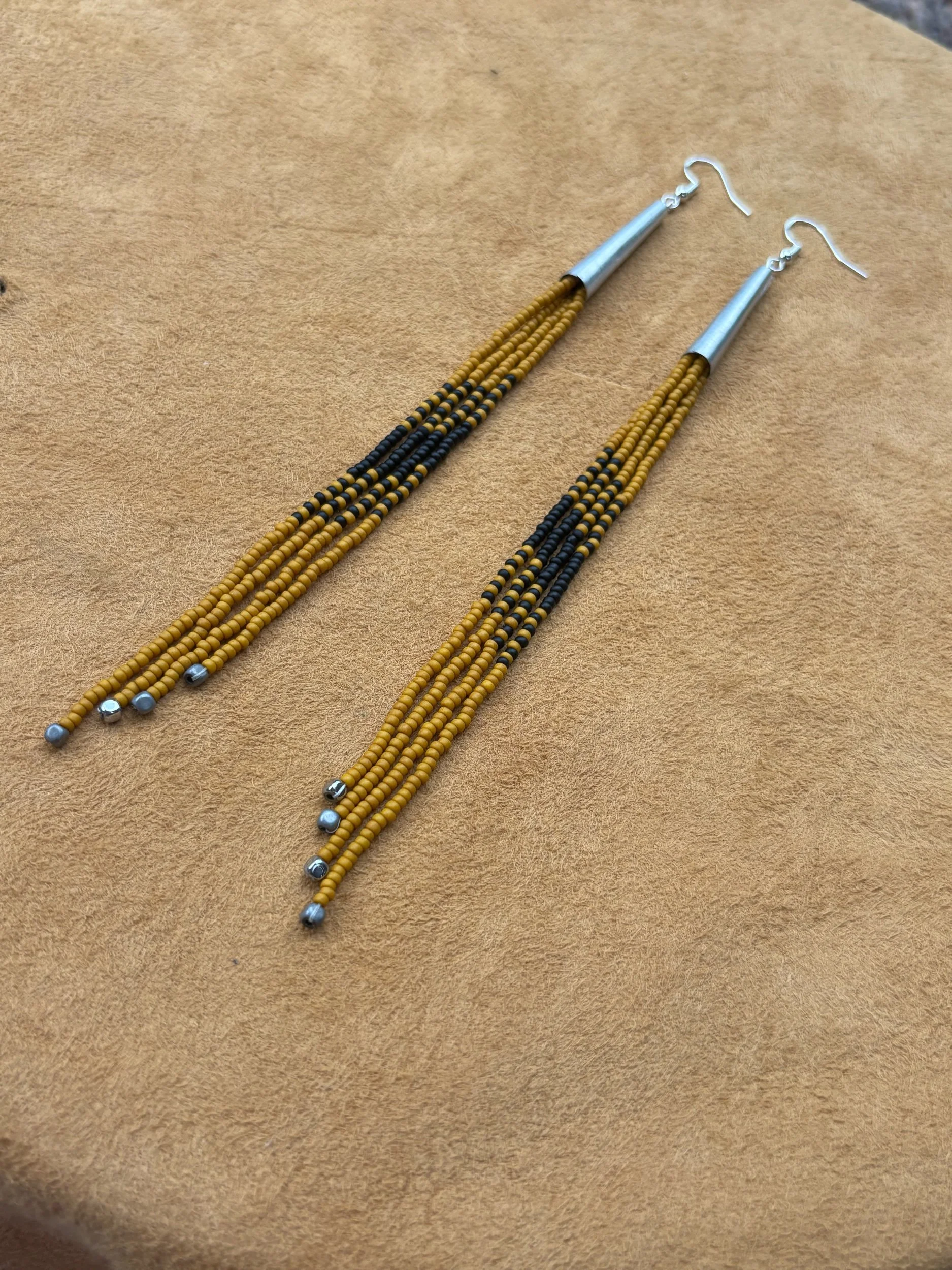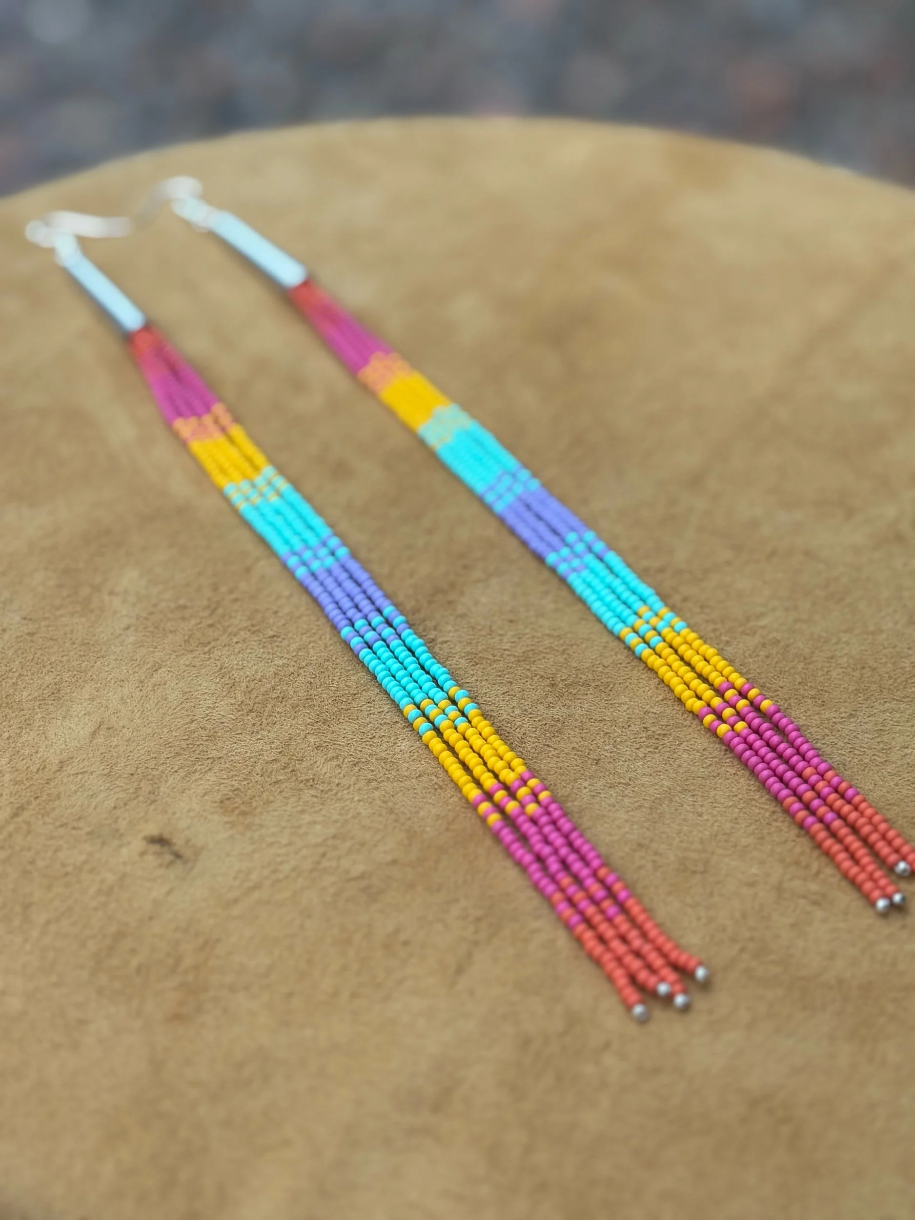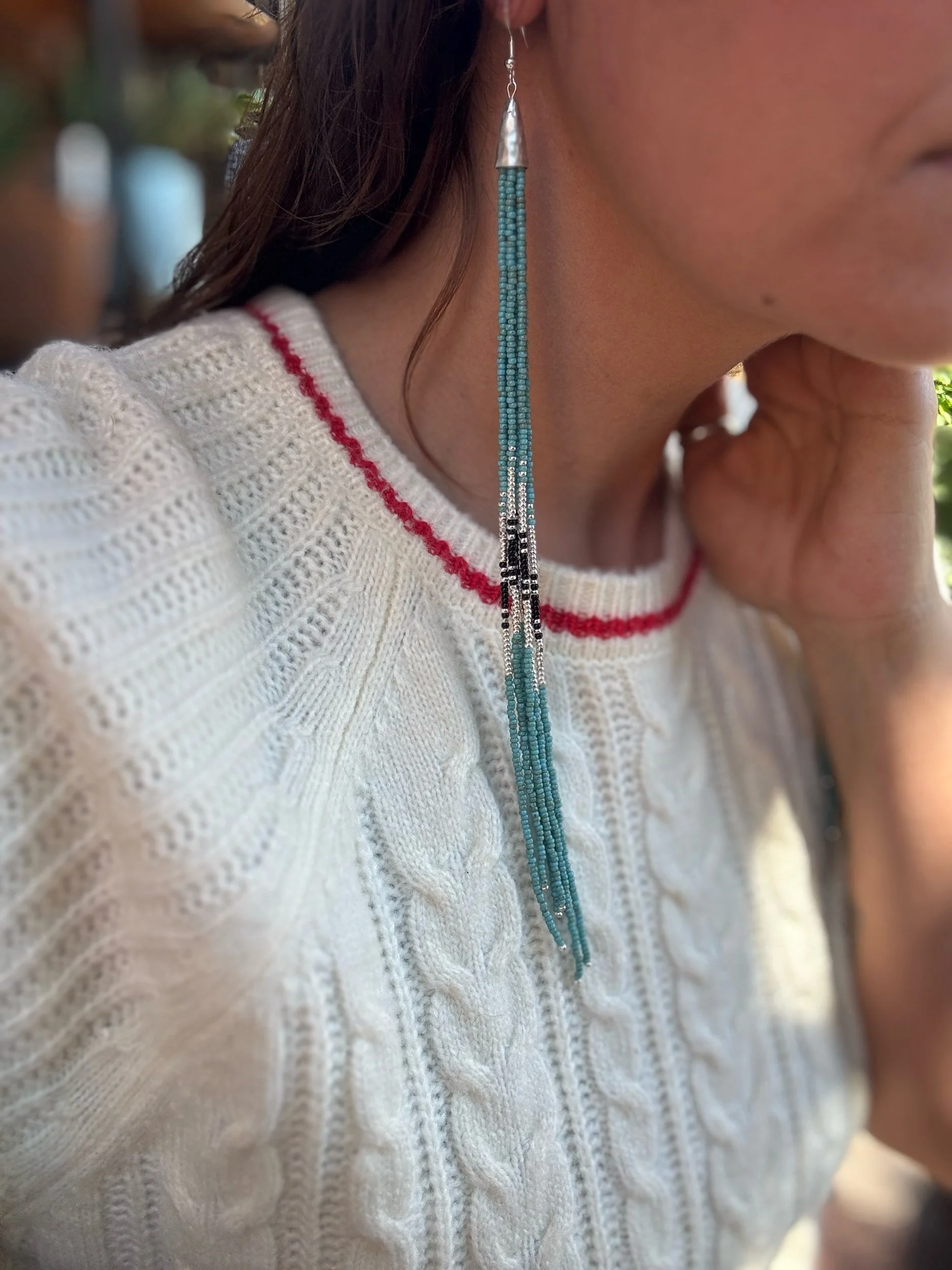 Turquoise and Sterling Silver Seven Strand Fringe Earrings $80.00 Orange and Blue “Thunder Theme Wristlet and Earring Set $70.00 Multicolored Striped Keychain $40.00 Four Strand Rainbow Matte Earrings $120.00 Matte Rainbow Cascading Fringe Earrings $120.00 Blue, Green and Yellow Five Strand Dentalium Fringe Earrings $120.00 Matte Chalk Block Fringe Earrings $80.00 Matte Mustard + Black Fringe Earrings $55.00 Matte Teal and Black + Sterling Silver Fringe Earrings $60.00 Matte Blue and Black + Sterling Silver Fringe Earrings $60.00 Multicolor Fringe Earrings with Sterling Silver Accents $60.00 Sold out Keychain $40.00 Hat Band Sale Price: $50.00 Original Price: $80.00 Sale Green and Gold Strawberry Fringe Earrings Sale Price: $45.00 Original Price: $60.00 Sale Green Dentalium Cascade Earrings $120.00 Sold out GIFT CARD from $50.00