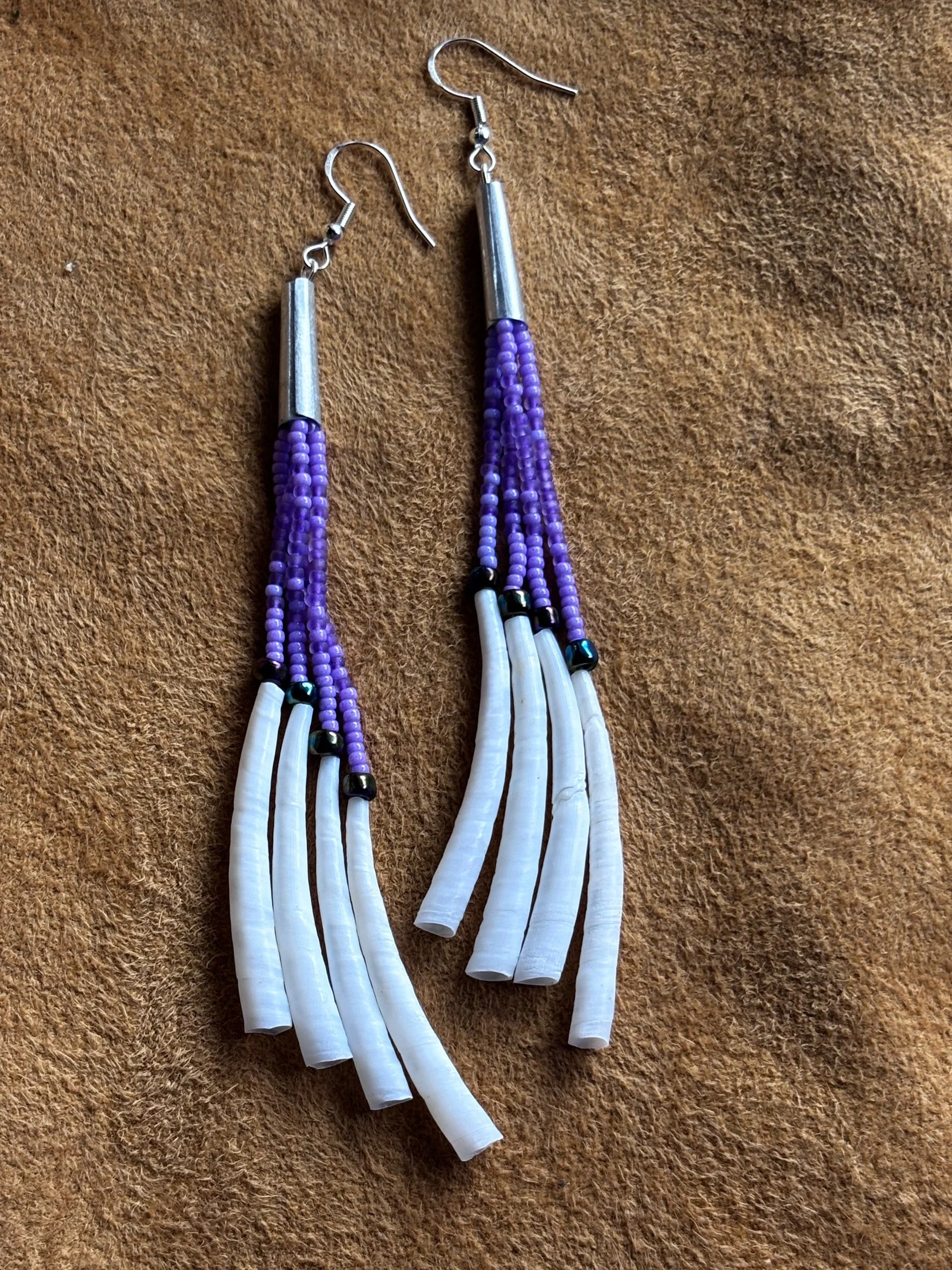 Black Bison Hair Pipe Three Strand Fringe Earrings